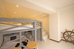 寝室は客船をイメージしたダブルベットでクルージングの夜を味わえます。